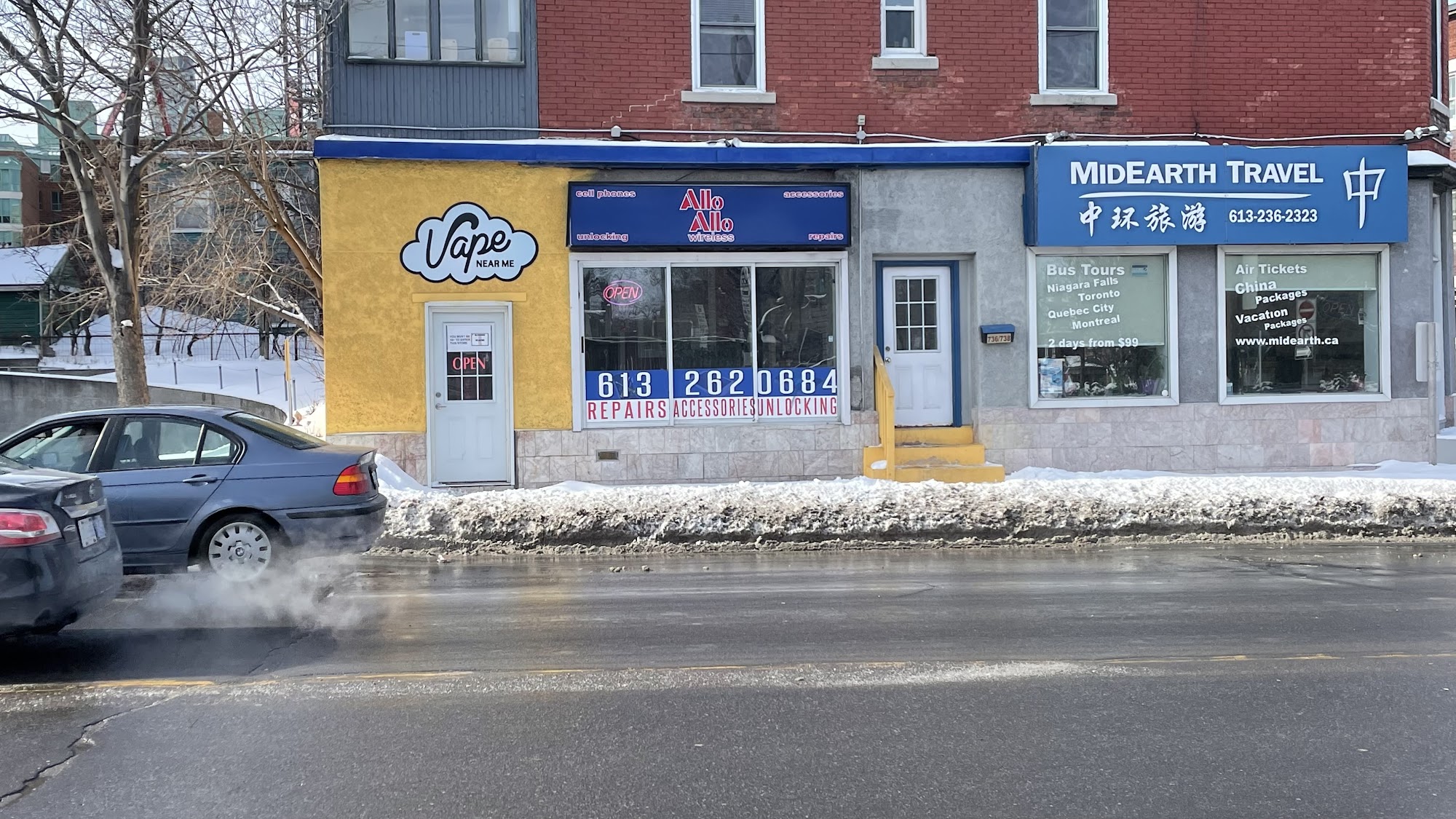 Allo Allo's archived storefront showed a wall-to-wall accessory shop. The current business listings still describe repairs, parts, accessories, and phone sales under one roof.